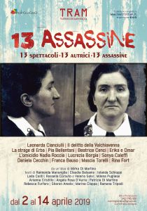 I 13 spettacoli fanno parte della rassegna 13 Assassine, ideata dal direttore artistico del Teatro Tram, Mirko di Martino, tredici corti teatrali dedicati ognuno ad altrettante assassine. Fatti di cronaca, più o meno recenti, che diventano spettacoli e vanno a indagare lo spirito, la dimensione psicologica e le relazioni di quelle donne.