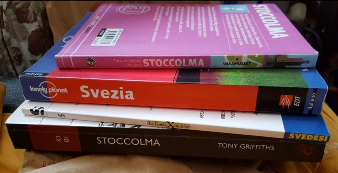 Qui inizia già il divertimento, perché si tratta di leggere e scoprire cose nuove. Grazie ad alcuni blog e gruppi di italiani all’estero che già conoscevo ricevo i primi consigli, un ruolo importante lo gioca il gruppo di viaggiatrici solitarie, grazie! Mi iscrivo alle pagine Facebook dedicate, quelle istituzionali, come Visit Sweden e Visit Stockholm, soprattutto navigo approfonditamente il sito dello Stockholm Pass, che la si acquisti o meno è uno strumento importantissimo per conoscere le attrazioni della città, con orari di apertura e costi di entrata. La parte più arricchente la fanno i libri che sono nella foto qui sotto.